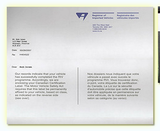 After completing the import process a few days to 10 days, you will receive a letter from RIV stating your vehicle was